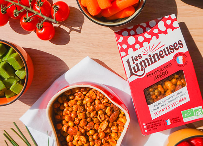 Délicieux mélange de pois chiches, pois vert, fèves, amandes, noix de cajou et cacahuètes grillés enrobés de tomates séchées… de quoi ravir vos papilles et réveiller vos apéritifs.